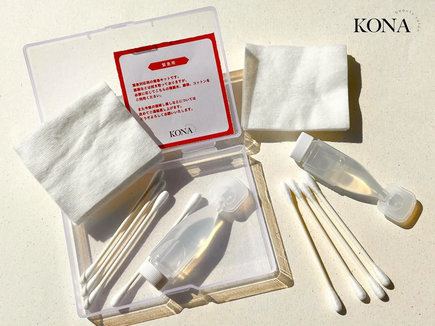 洗浄用の精製水やコットン、綿棒など、